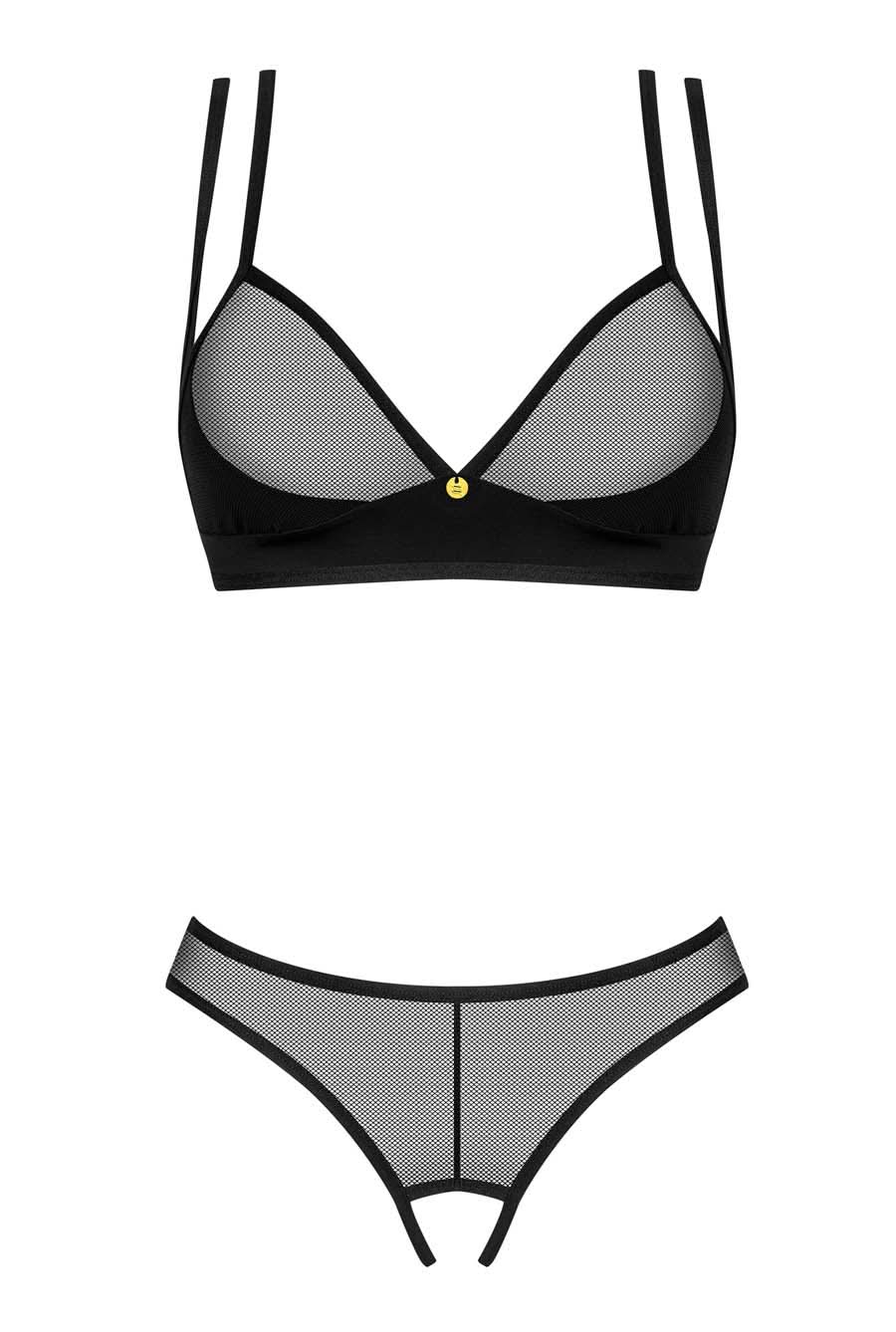 Black Fishnet Bra & Crotchless Gstring Set