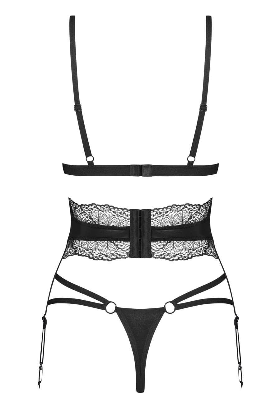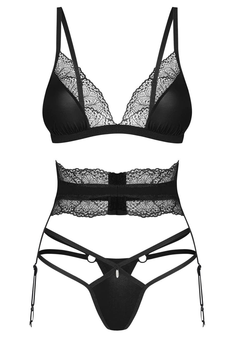 Black Lace 3 Piece Suspender Belt Lingerie Set