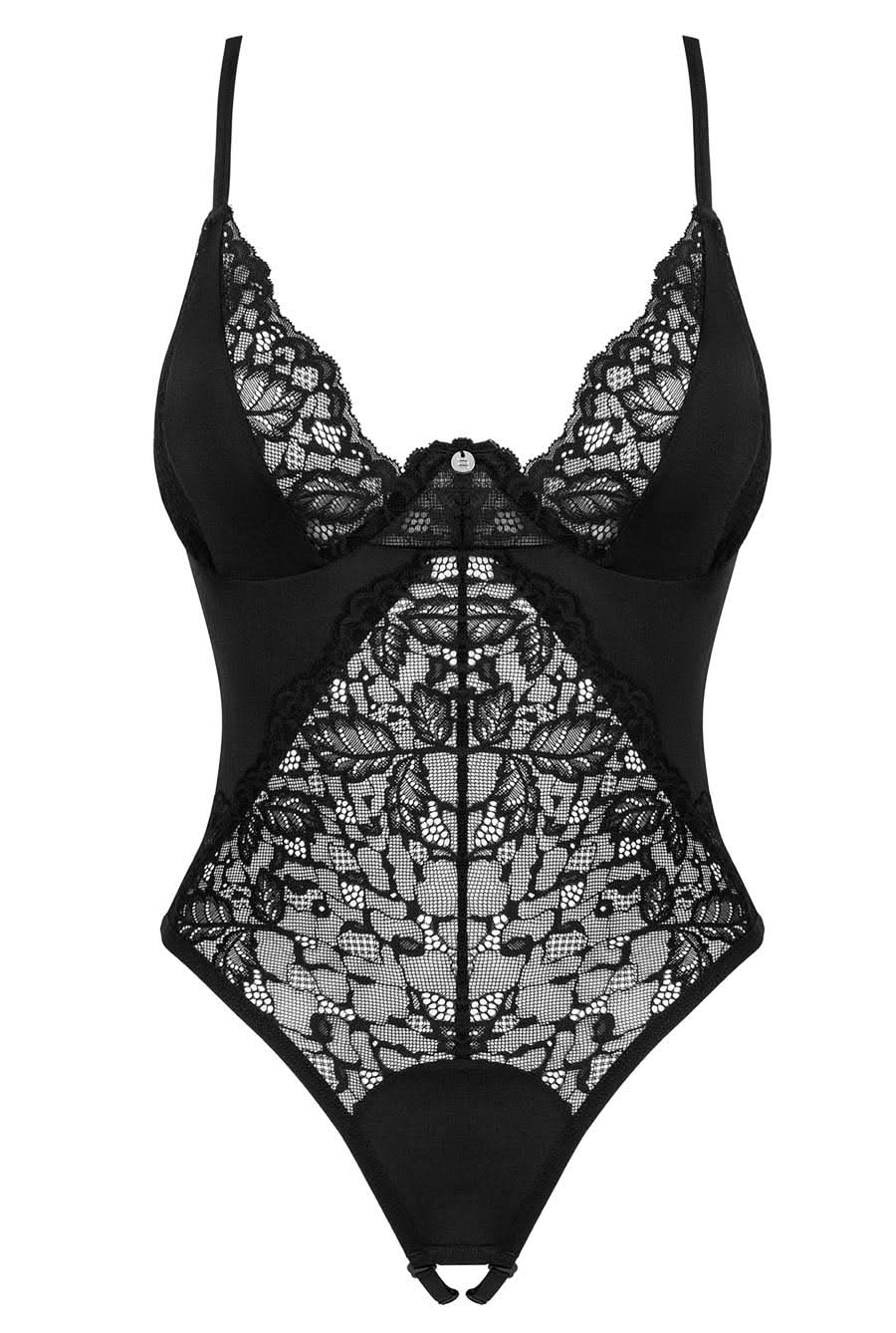 Delicate Black Lace Crotchless Teddy Bodysuit