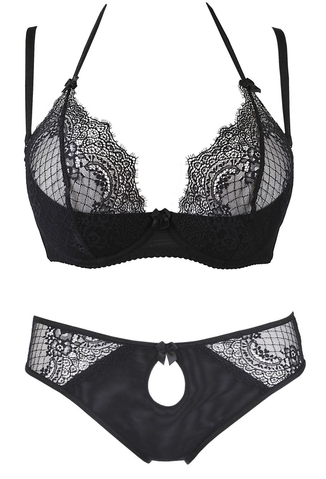 Classic Black Lace Peek A Boo Bra & Panty Set