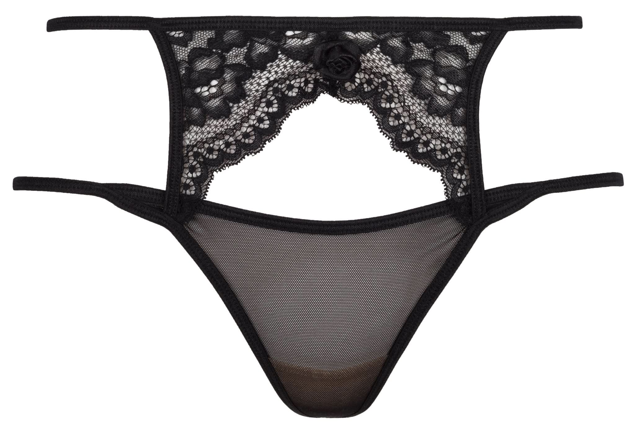 Erotic Black Lace Open Cup, Gstring & Suspender Set