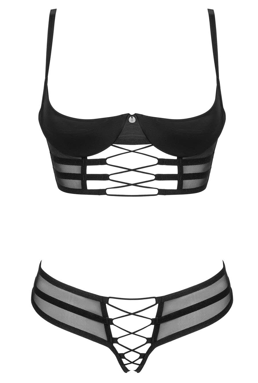 A sultry new cupless and crotchless lingerie look is a great new edition! The black sheer mesh crossed with cut out features soft underwire cups for support, lace cut away back design and and open crotch.