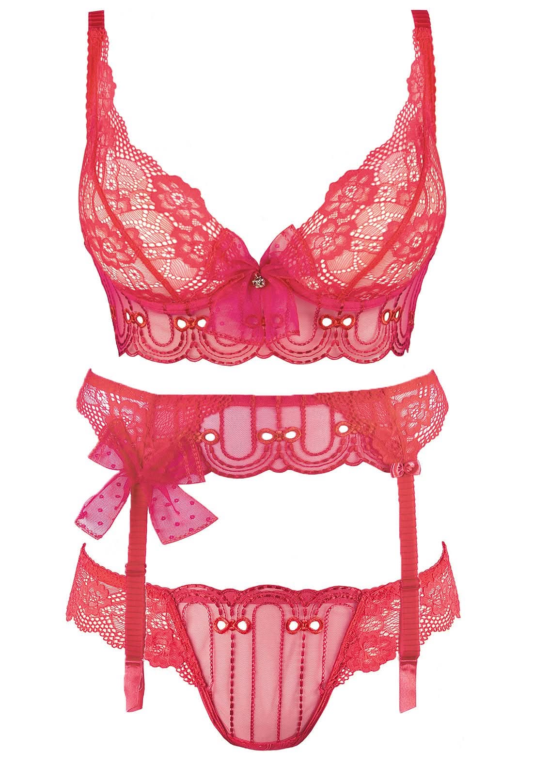 Luxury Pink Lace Bra, Grstring & Garterbelt Set