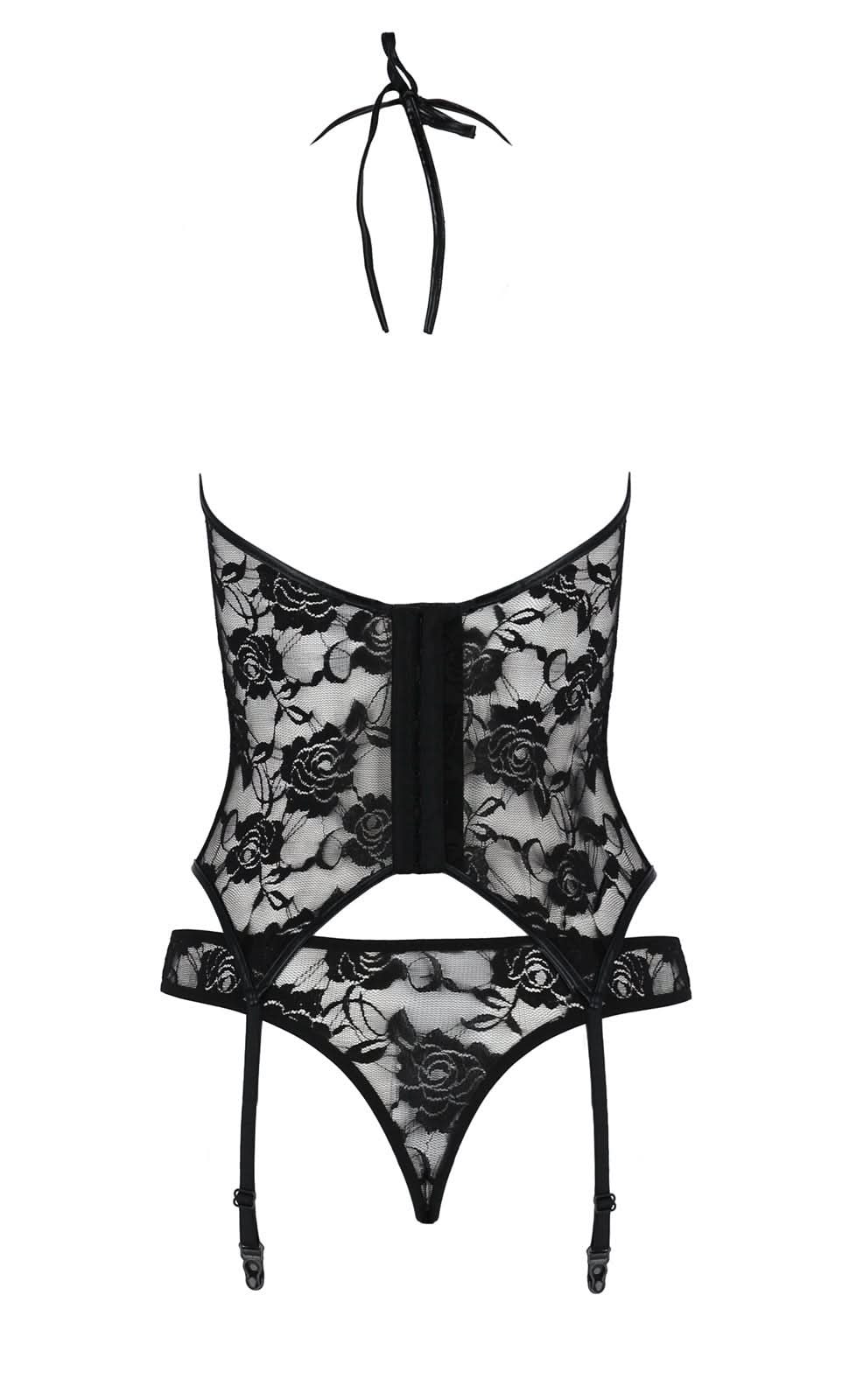 Discover the Allure of the New Black Faux Leather and Lace Corset Set