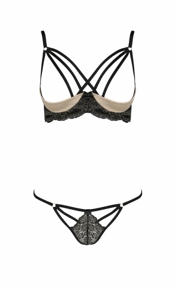 Gold Satin & Black Half Cup Lace Lingerie Set
