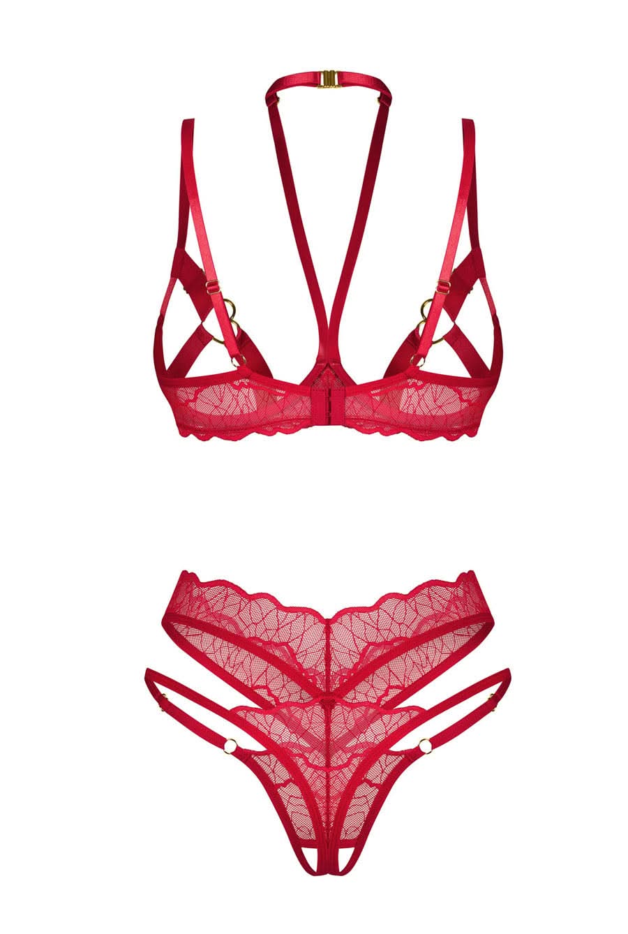 Are you ready to add a touch of excitement to your collection? Discover this striking red crotchless lingerie ensemble that embodies a captivating allure! Imagine a charming bra and thong set, beautifully crafted in a rich red hue and embellished with elegant gold details. It’s truly a head-turner!