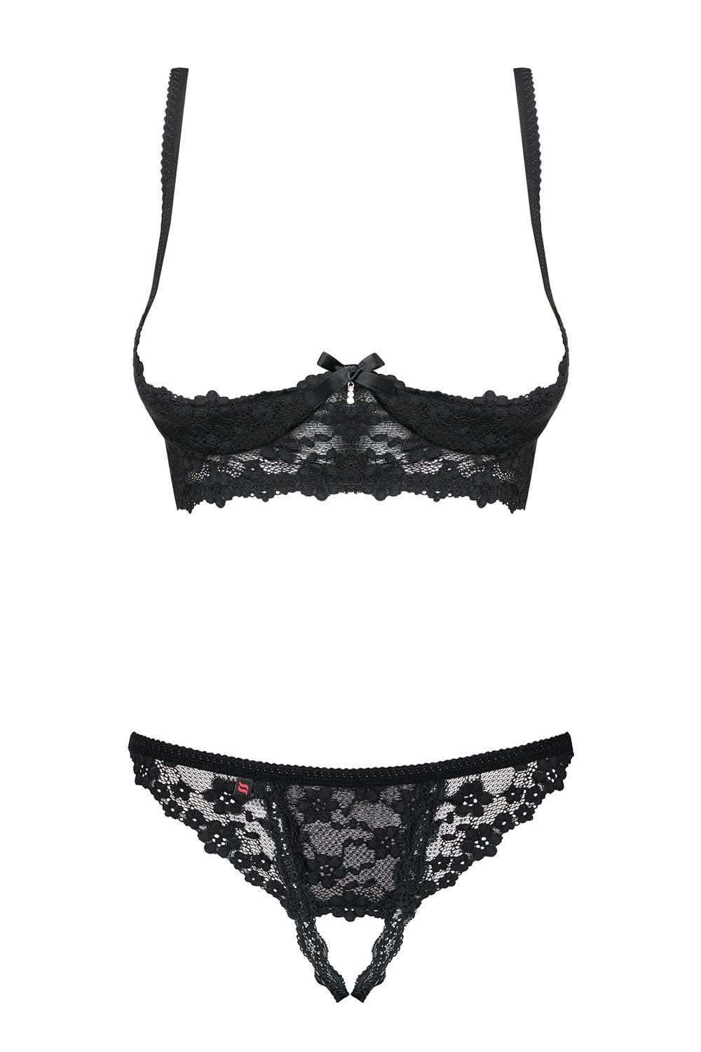 Black Lace Open Cup Bra & Crotchless Lingerie Set