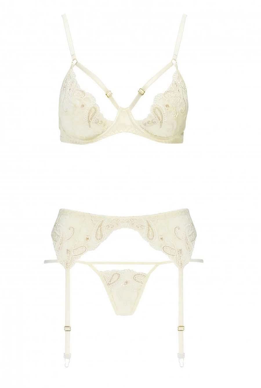 Indulge in the epitome of sophistication with an exquisite bridal lingerie set that perfectly blends elegance and allure. Crafted from luxurious cream ivory satin and adorned with delicate ivory embroidery lace, this ensemble is not only ideal for a summer getaway but also makes for a stunning addition to any bridal trousseau. This collection showcases a unique and sensual design, meticulously handmade in Europe, embodying both quality and style.