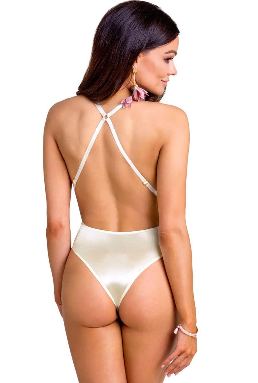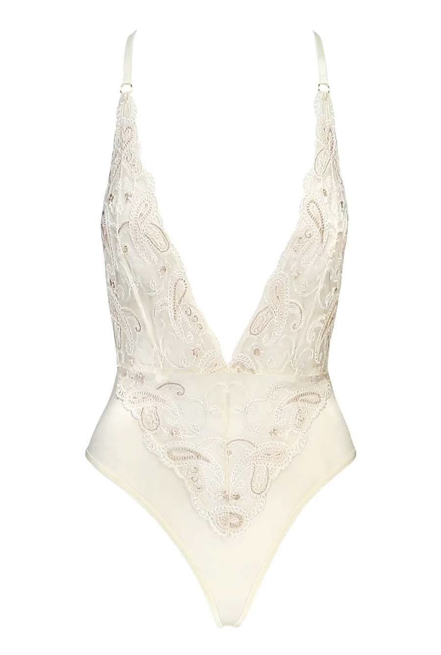 Elevate your bridal experience with an exquisite piece of lingerie designed to celebrate your special day. Crafted from luxurious ivory satin and adorned with elegant embroidery lace, this bodysuit stands out as a remarkable addition to any brides’ wardrobe. Whether you are planning a summer getaway or preparing for your wedding night, this handcrafted piece embodies sophistication with a playful twist.