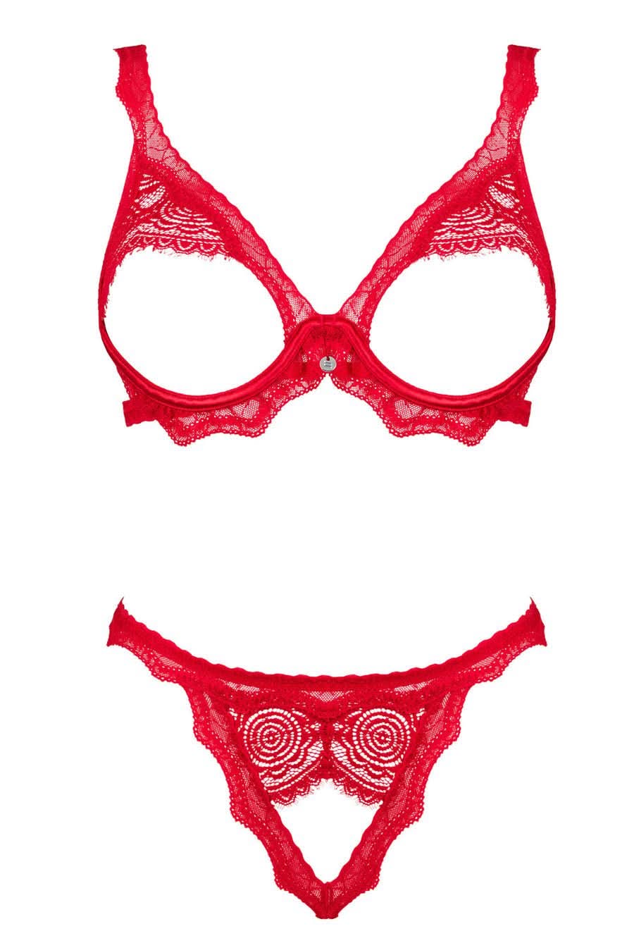 Red Lace Open Cupless Bra & Crotch Gstring Set