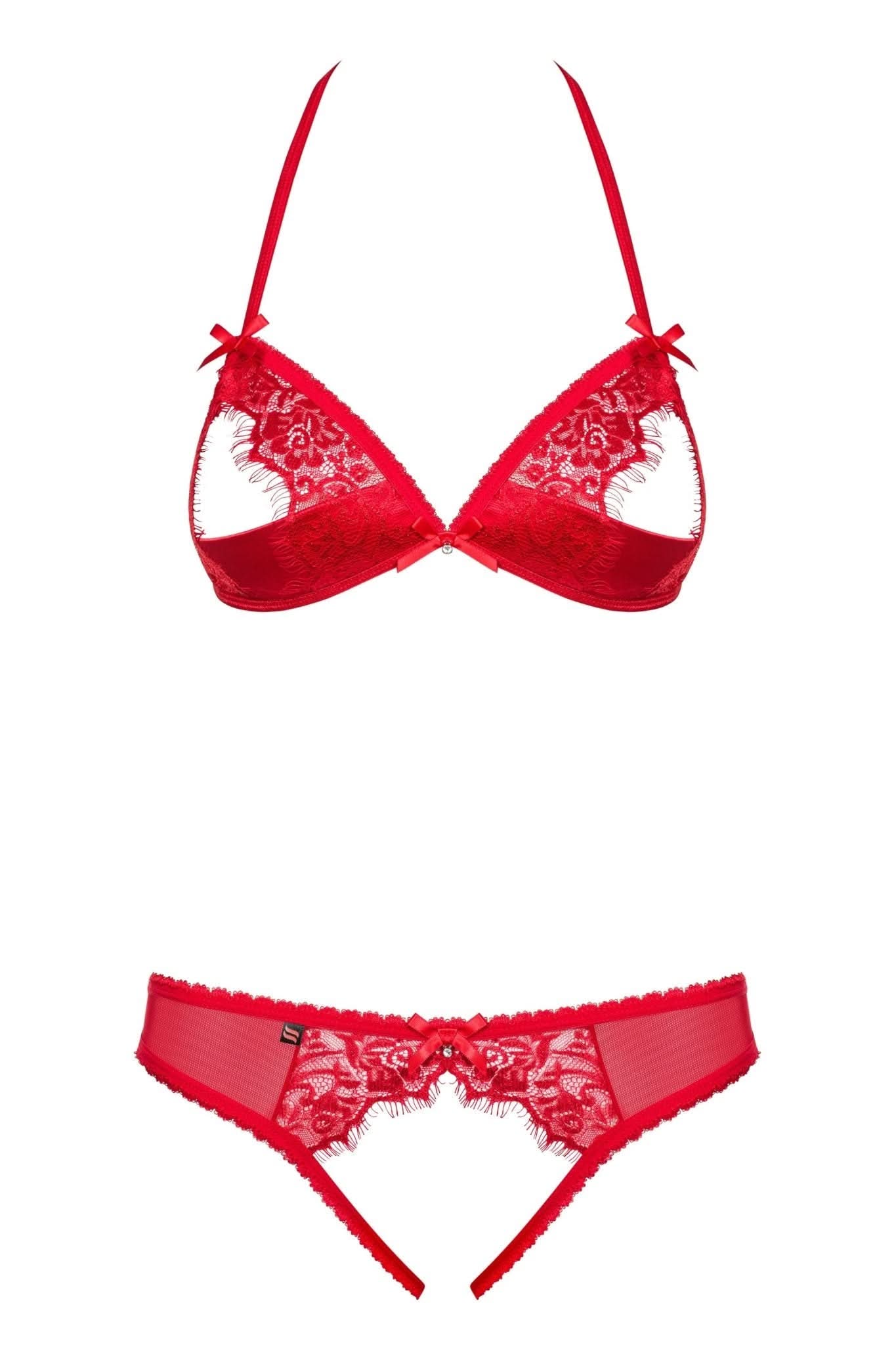Erotic Red Satin Open Cup Bra & Crotchless Gstring