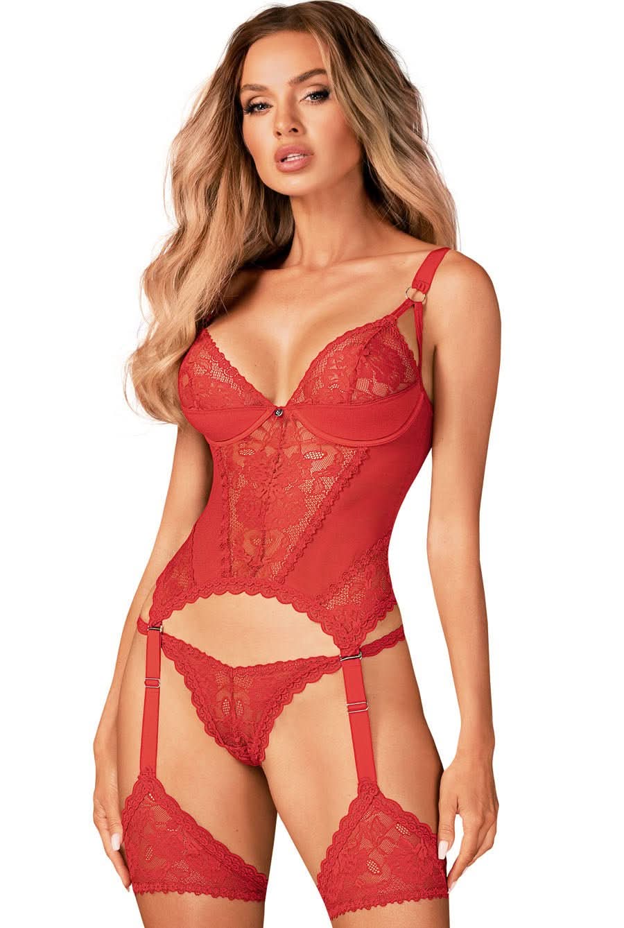 Red Underwire Corset Set With Garter Stays