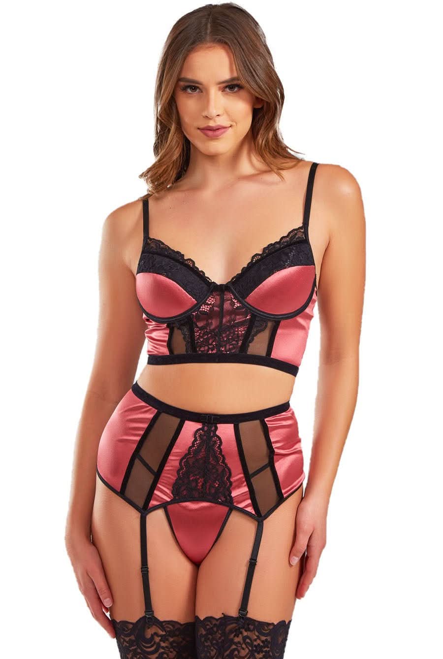 Discover the Allure of the Rose Satin and Black Lace Corset Bra Set