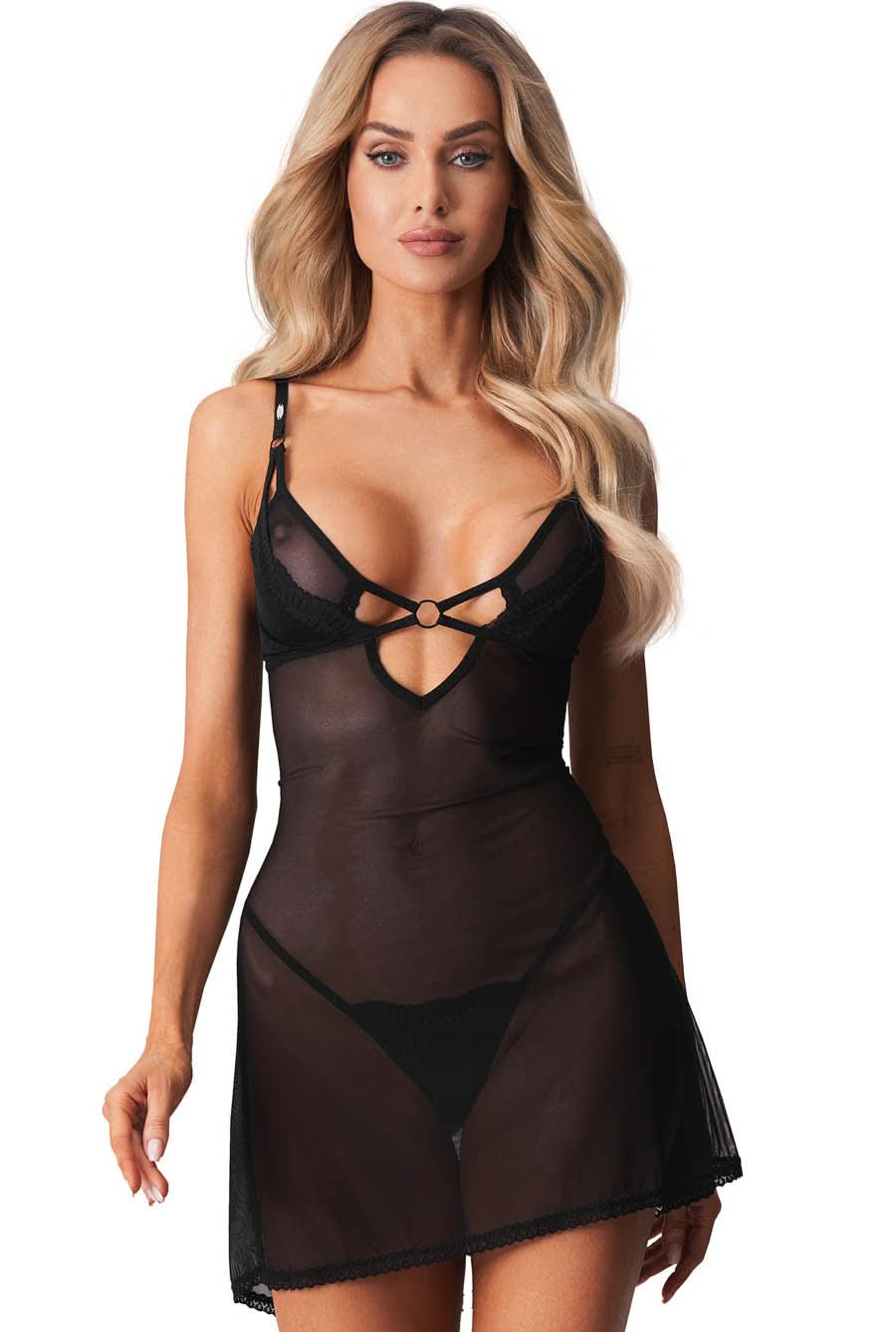 Elevate your lingerie collection with this exquisitely designed chemise that effortlessly balances sophistication and sensuality. With its modern flair, this piece is an essential addition for any woman seeking to enhance her intimate wardrobe. Crafted from delicate mesh and adorned with intricate lace accents at the bust, this chemise beautifully contours to the body, offering a stunning silhouette that flatters all curves.