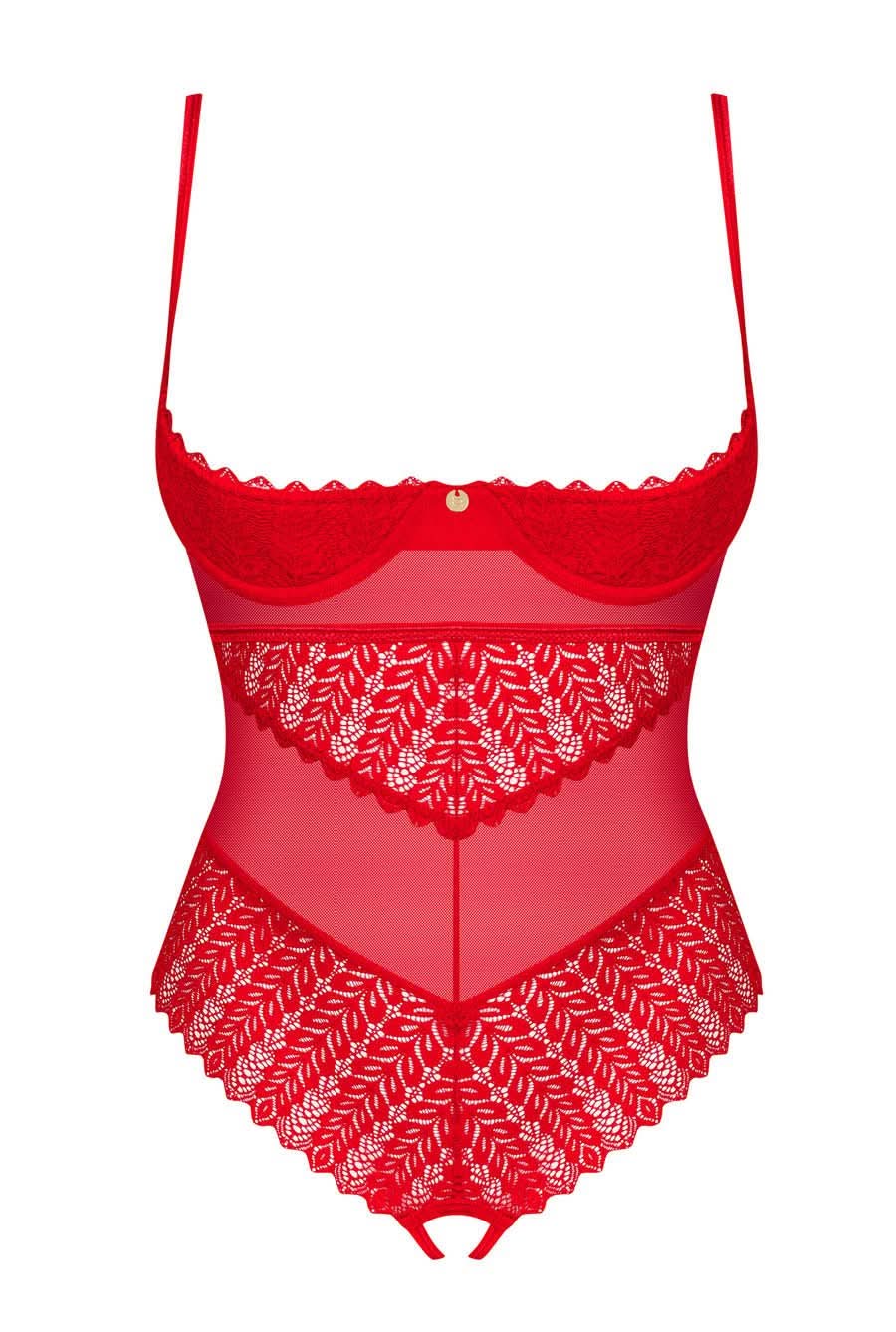 Erotic Red Lace Quarter Cup, Crotchless Bodysuit