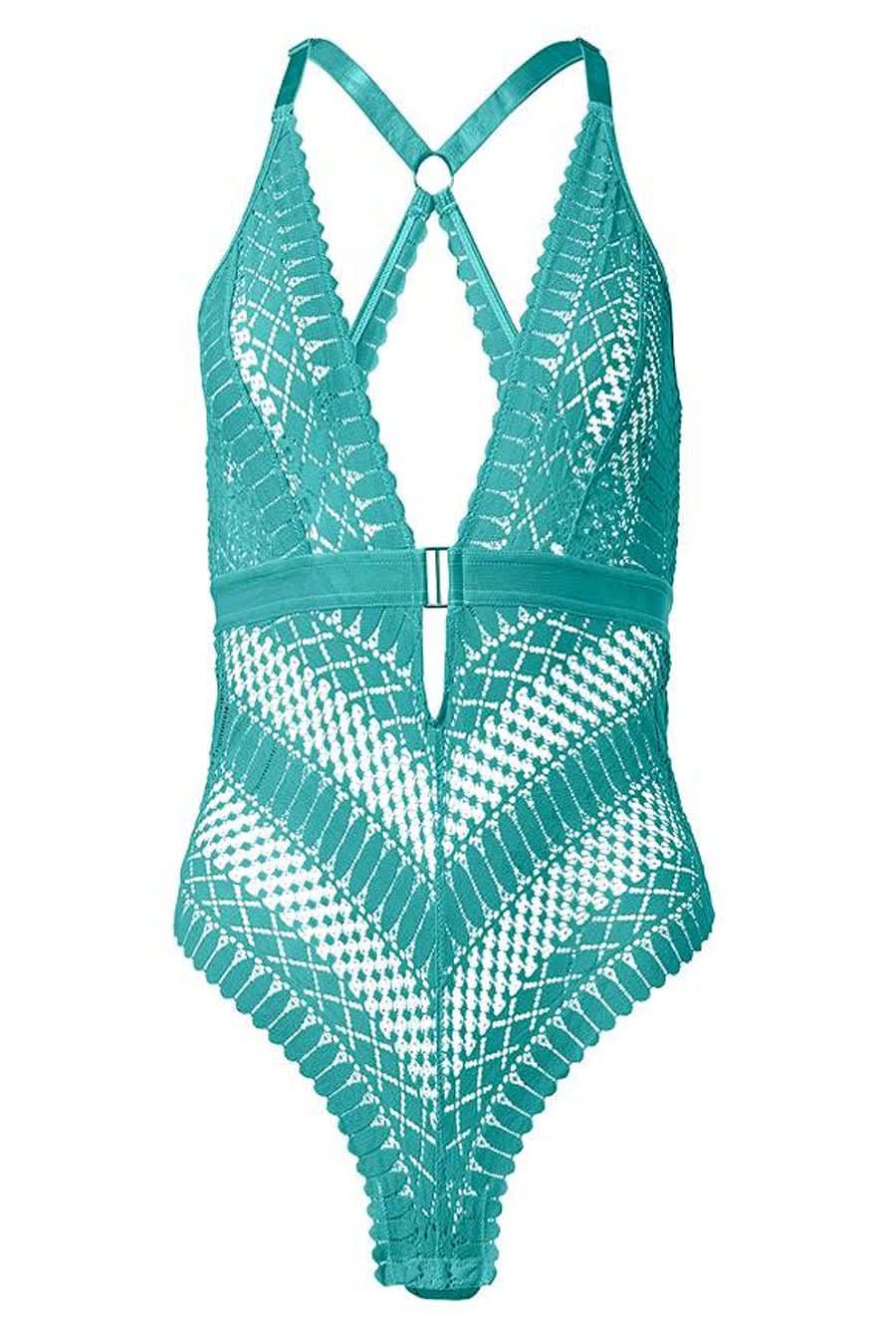 Discover a delightful addition to your wardrobe with this stunning bodysuit that combines elegance and comfort. Crafted from sheer green floral lace, this piece features a plunging neckline that enhances its appealing silhouette.